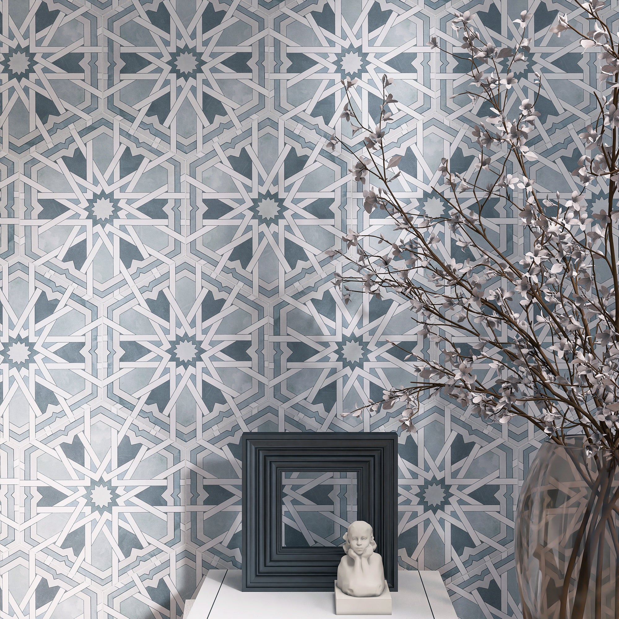 RAD-SAGE-HX89 Radiant Sage Gray Blue 7.88" x 9.45" Hexagon Porcelain Patterned Wall & Floor Tile